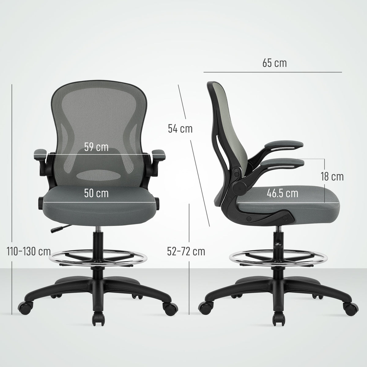 Vinsetto Drafting Chair, Ergonomic Tall Office Chair with Flip-up Armrests, Mesh Back, Lumbar Support, Adjustable Height and Foot Ring, Swivel Wheels, for Standing Desk, Charcoal Grey - Charcoal grey