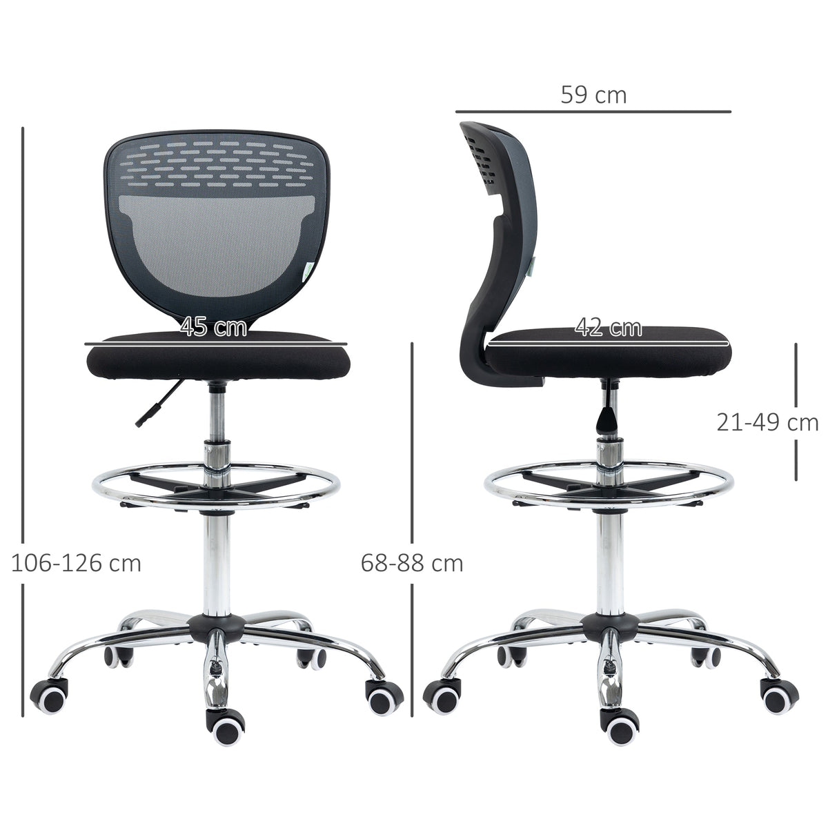 Vinsetto Drafting Chair, Swivel Office Draughtsman Chair, Mesh Standing Desk Chair with Adjustable Foot Ring, Armless, Grey - Grey