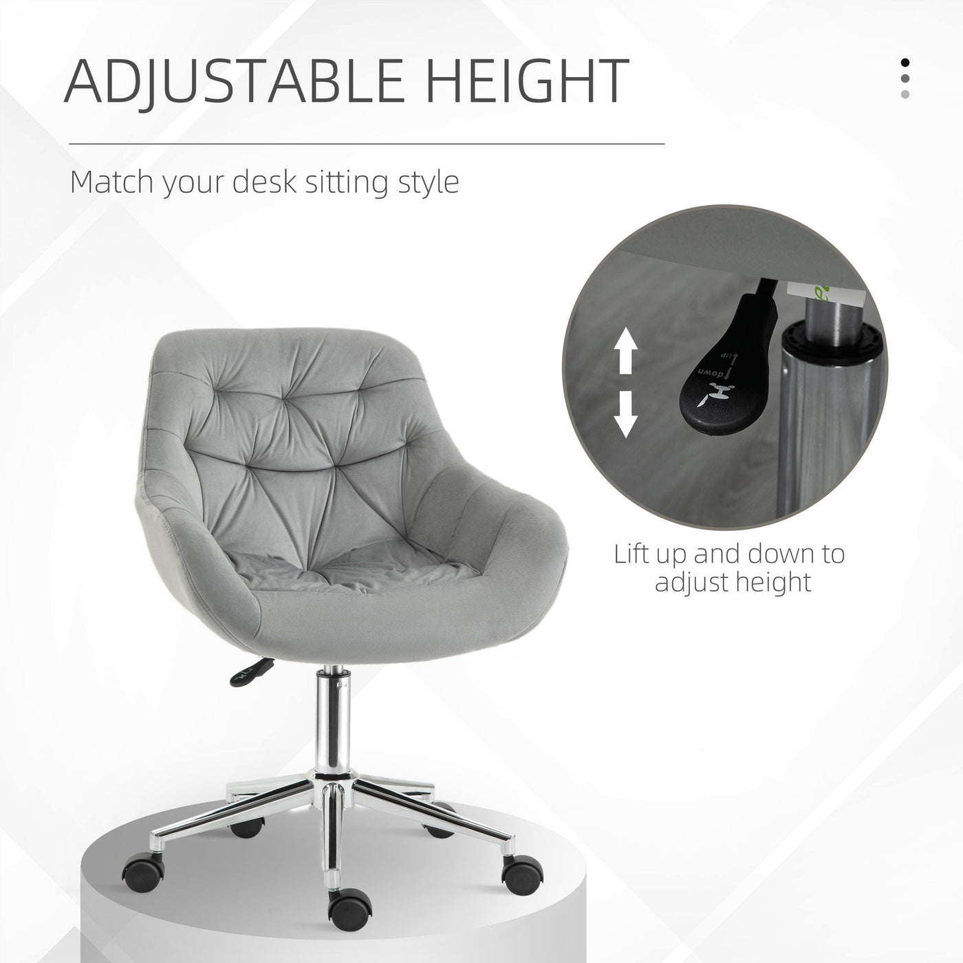 Vinsetto Home Office Chair Velvet Ergonomic Computer Chair Comfy Desk Chair with Adjustable Height, Arm and Back Support, Grey - Grey