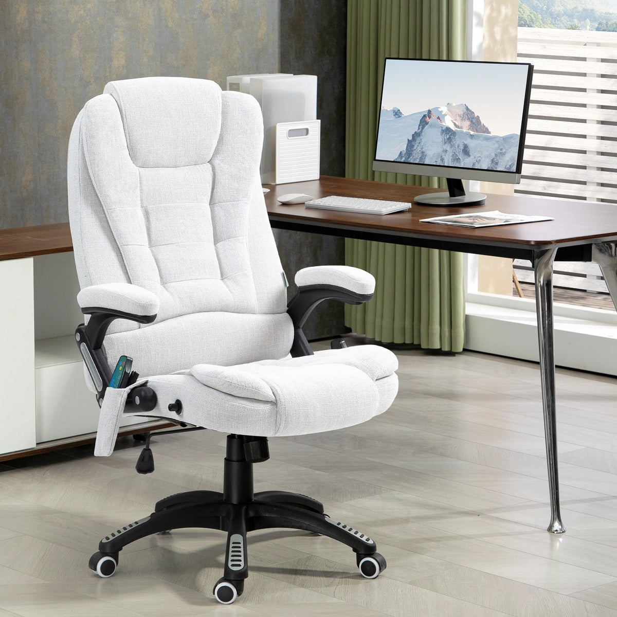 Vinsetto Massage Recliner Chair Heated Office Chair with Six Massage Points Linen-Feel Fabric 360 Swivel Wheels Cream White - White