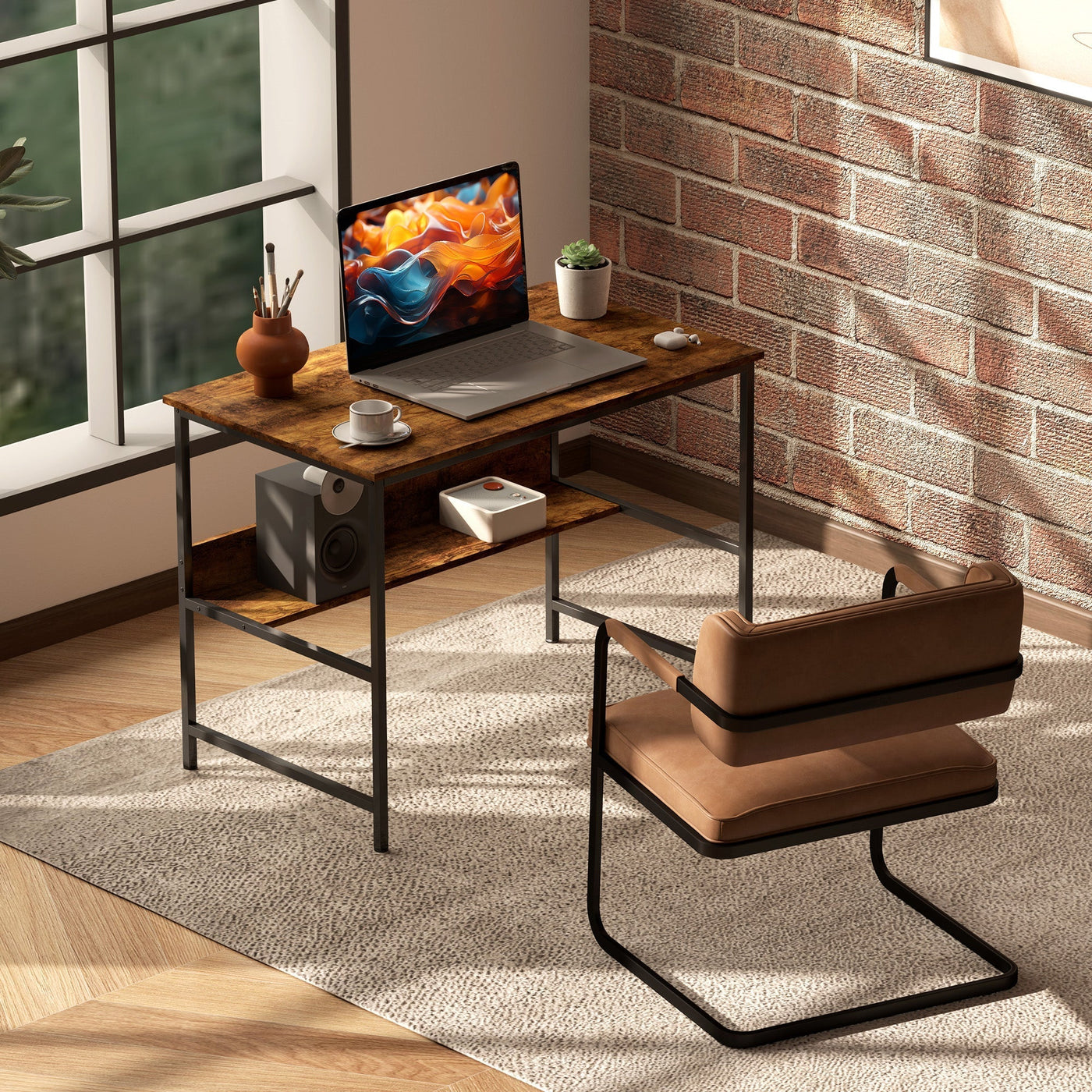 HOMCOM 2-Tier Computer Desk, 100 x 60 cm, Rustic Brown - Rustic Brown