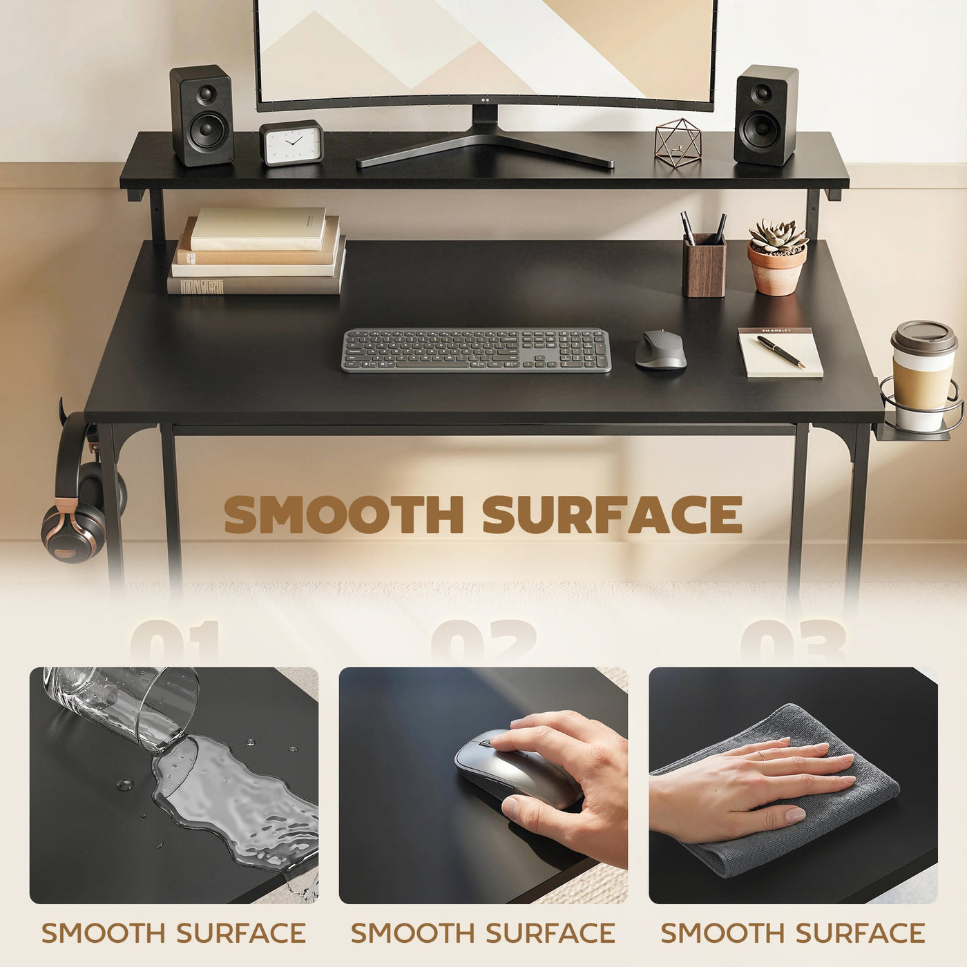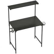HOMCOM Computer Desk, 80cm Home Office Study Table with Hutch Shelf, Cup Holder, Headphone Hook, Black - Black