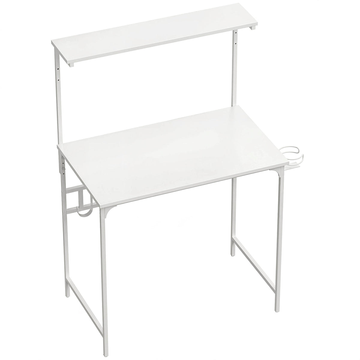 HOMCOM Computer Desk, 80cm Home Office Study Table with Hutch Shelf, Cup Holder, Headphone Hook, White - White
