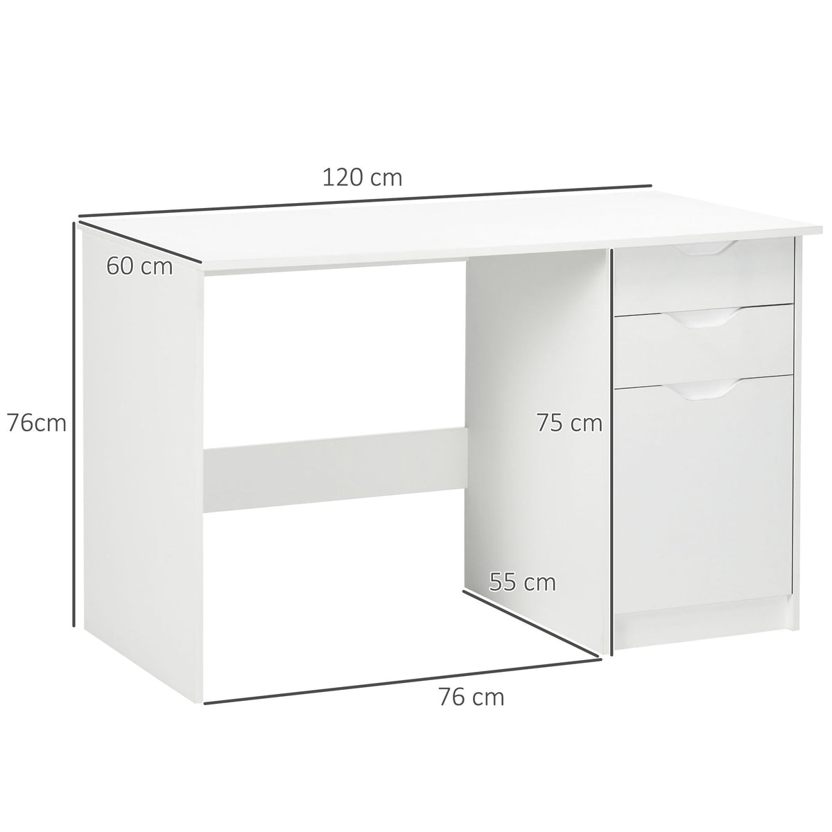 HOMCOM Computer Desk with Drawers, High Gloss Home Office Desk with Storage Cabinet, Study Workstation, 120 x 60cm, White - White