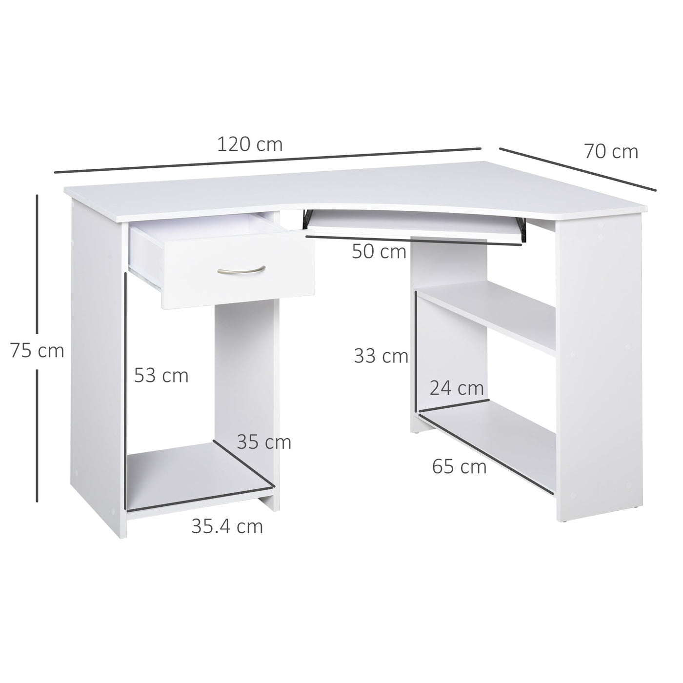 HOMCOM L-Shaped Corner Computer Desk w/ 2 Shelves Wide Worktop Keyboard Tray Drawer & CPU Stand Home Office Study Bedroom Furniture White - White