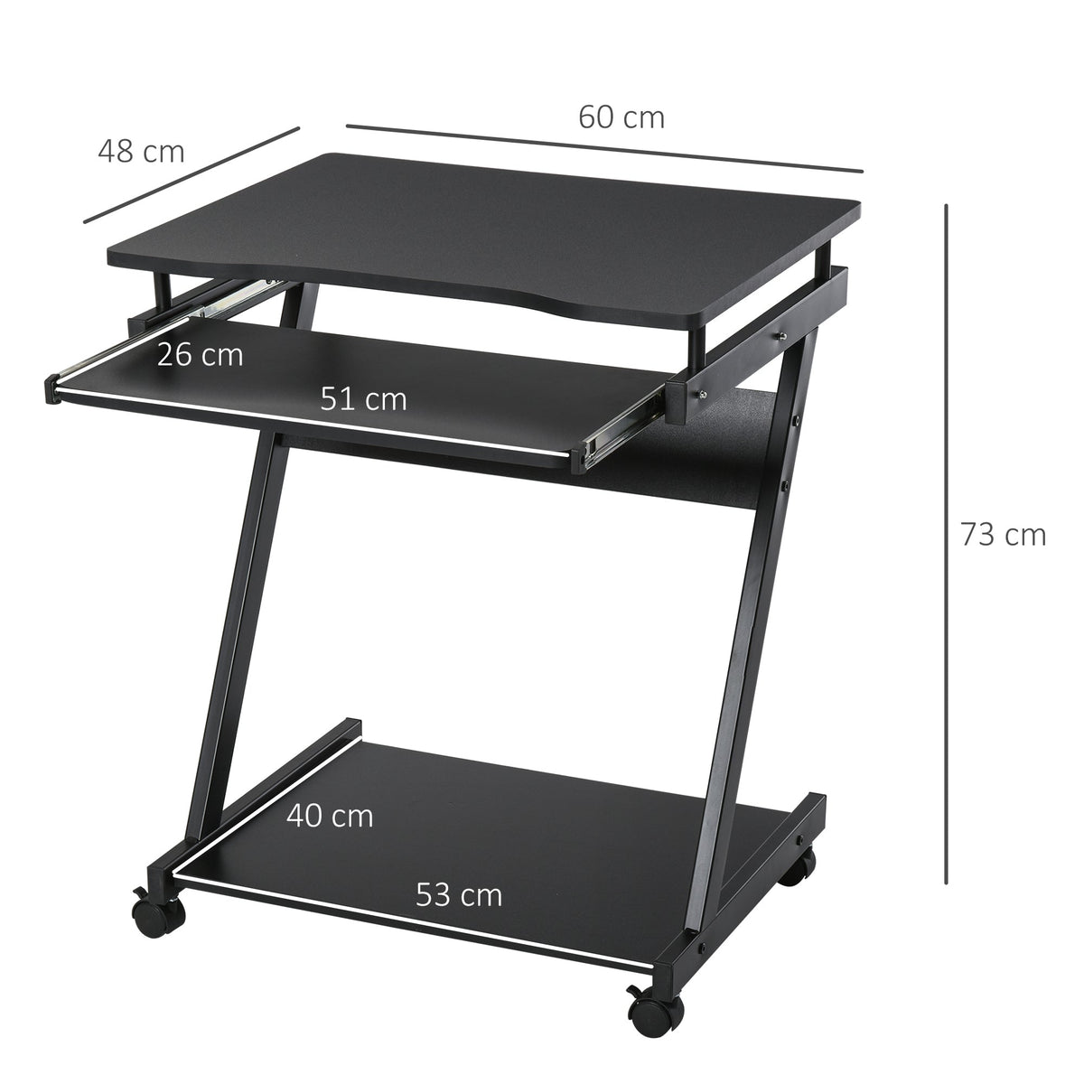 HOMCOM Movable Computer Desk with 4 Moving Wheels Sliding Keyboard Tray Home Office Workstation Black - Black