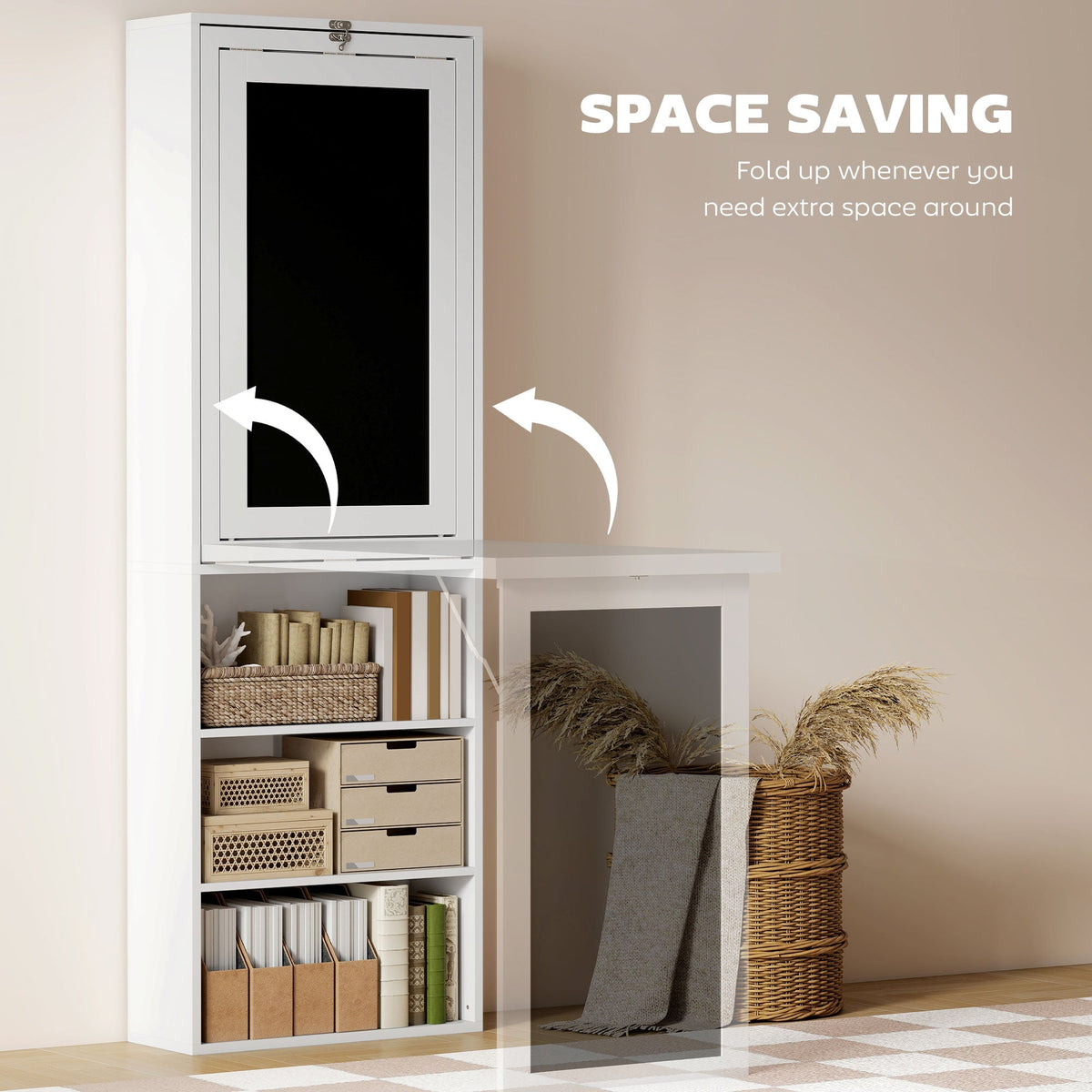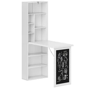 HOMCOM Wall Mounted Computer Desk, Folding Study Table with Black Board and Bookshelf, Multifunctional Floating Writing Desk for Home Office, White - White