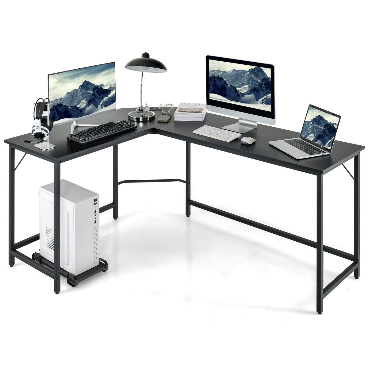 Need to charge but the nearest outlet is far away? Looking for a versatile computer workstation? This L-shaped desk with power outlet deserves a try. Whether you need a spot to study, game or just finish important work, the corner computer desk will fulfill your requirements. Wide desktop also provides ample storage space for your office supplies. More, 2 outlets, 1 USB port and 1 Type-C port are convenient to charge mobile phones, tablets, gaming gear. The CPU stand provides great convenience to freely move your computer host. The L-shaped desk with sturdy construction ensures reliable support and maintains excellent stability. Furthermore, L-shaped design helps you solve the problem of multitasking or 2-person working simultaneously. If you are looking for an L-shaped desk like this, do not hesitate to place an order! Large L-shaped Desktop: L-shaped desktop not only provides spacious space for 2-3 monitors, books, plants, cups and lamp, but also offers enough working space for home office activities. Additionally, this L-shaped PC desk fairly suits for a corner to maximize your limited space. Intimate Power Outlet and CPU Stand: The intimate charging station is equipped with 2 outlets (220-240V), 1 USB port and 1 Type-C port (5V, Max 3.1A) to provide fast charging options for mobile phones, tablets, and gaming gear, etc. The bonus CPU stand allows for more space to store your computer host. Sturdy Metal Construction: Composed of powder-coated metal frame and thickened desktop, the L-shaped desk features remarkable sturdiness, durability, and longer lifespan. It boasts the load capacity of 150 kg without shaking. Plus, adjustable foot pads improve overall stability and provide floor protection. Multifunctional Desk: Can not only this desk serve to be a gaming desk, but also be used as a computer workstation or a study table. Additionally, the L-shaped computer desk is a versatile piece that goes well with different furnishing style, such as home, gaming room, and office, etc. Simple Assembly and Care: Illustrated instructions and complete accessories are provided to help you shorten assembly time. You can quickly put all parts together by following the instructions step by step. And there is no need for tedious maintenance at ordinary times.