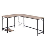 L-Shaped Desk with Power Outlet CPU Stand and Heavy-duty Metal Frame-Natural