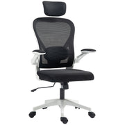 HOMCOM Executive Office Chair, Ergonomic Mesh High Back Desk Chair with Flip-up Armrest, Rotatable Headrest, Adjustable Lumbar Support for Home Study, Black - Black