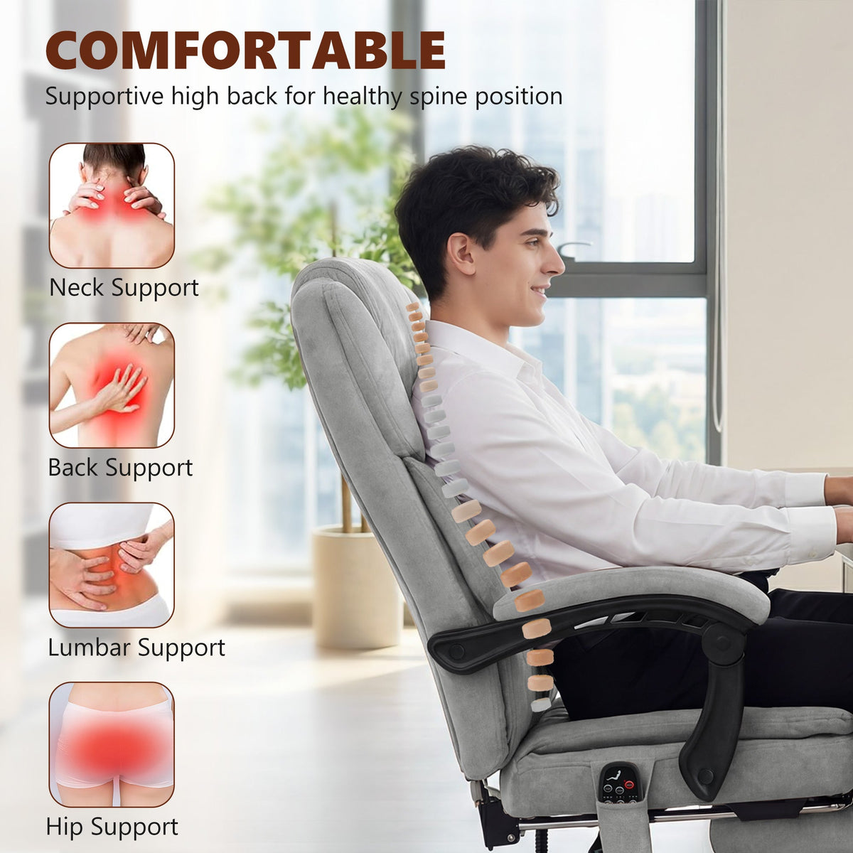 HOMCOM Office Chair with 6-Point Vibration Massage and Heat, Executive Computer Desk Chair with High Back, Reclining, Grey - Grey