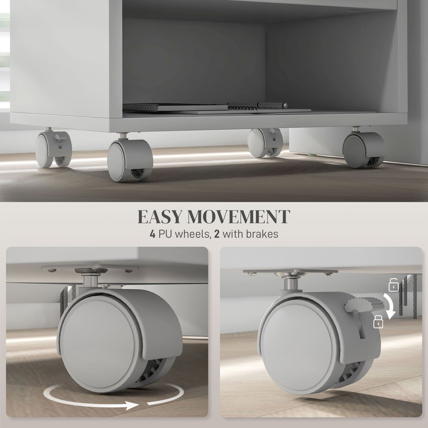 HOMCOM Three-Compartment Printer Cabinet, with Wheels - White