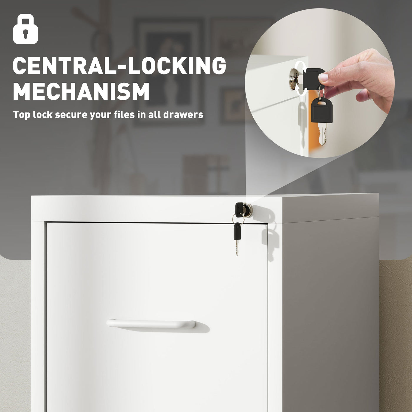 HOMCOM Four-Drawer Modern Steel Filing Cabinet - White - White