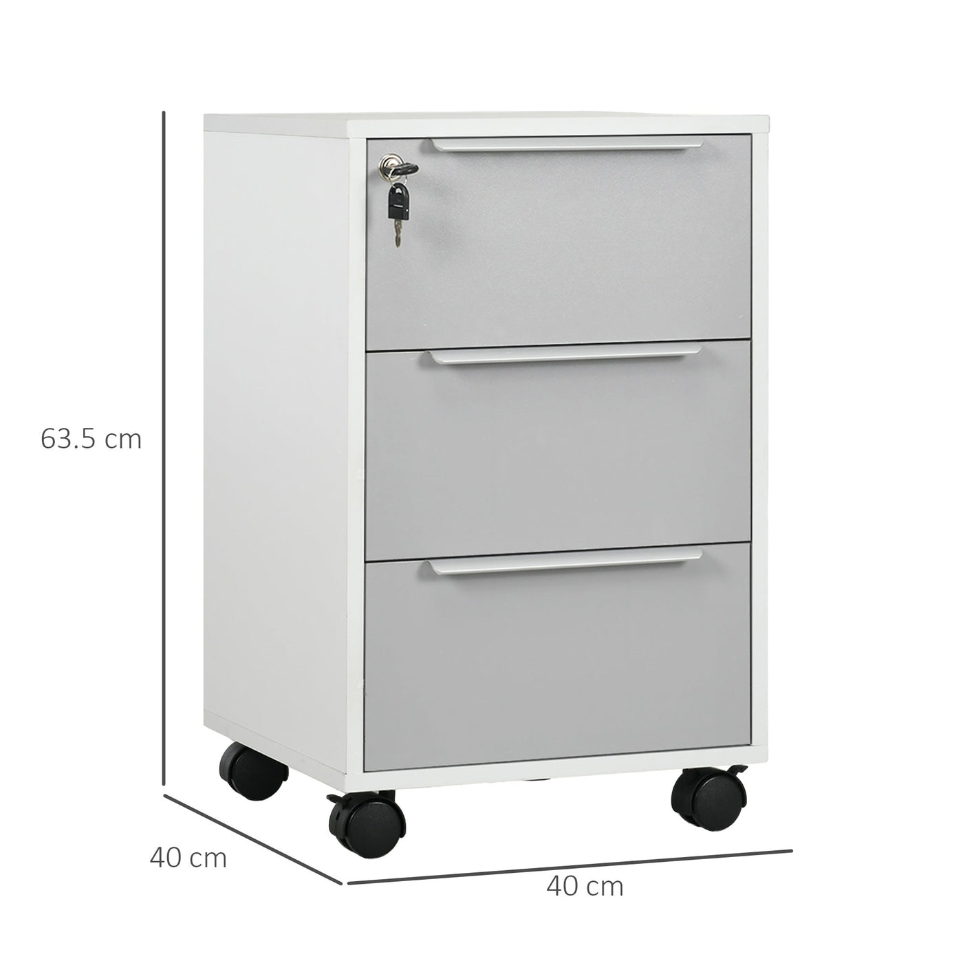 HOMCOM Three-Drawer Locking Filing Cabinet - Grey/White
