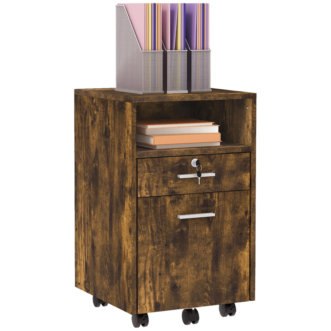 Vinsetto Lockable Two-Drawer Filing Cabinet, with Wheels - Wood-Effect - Rustic Brown