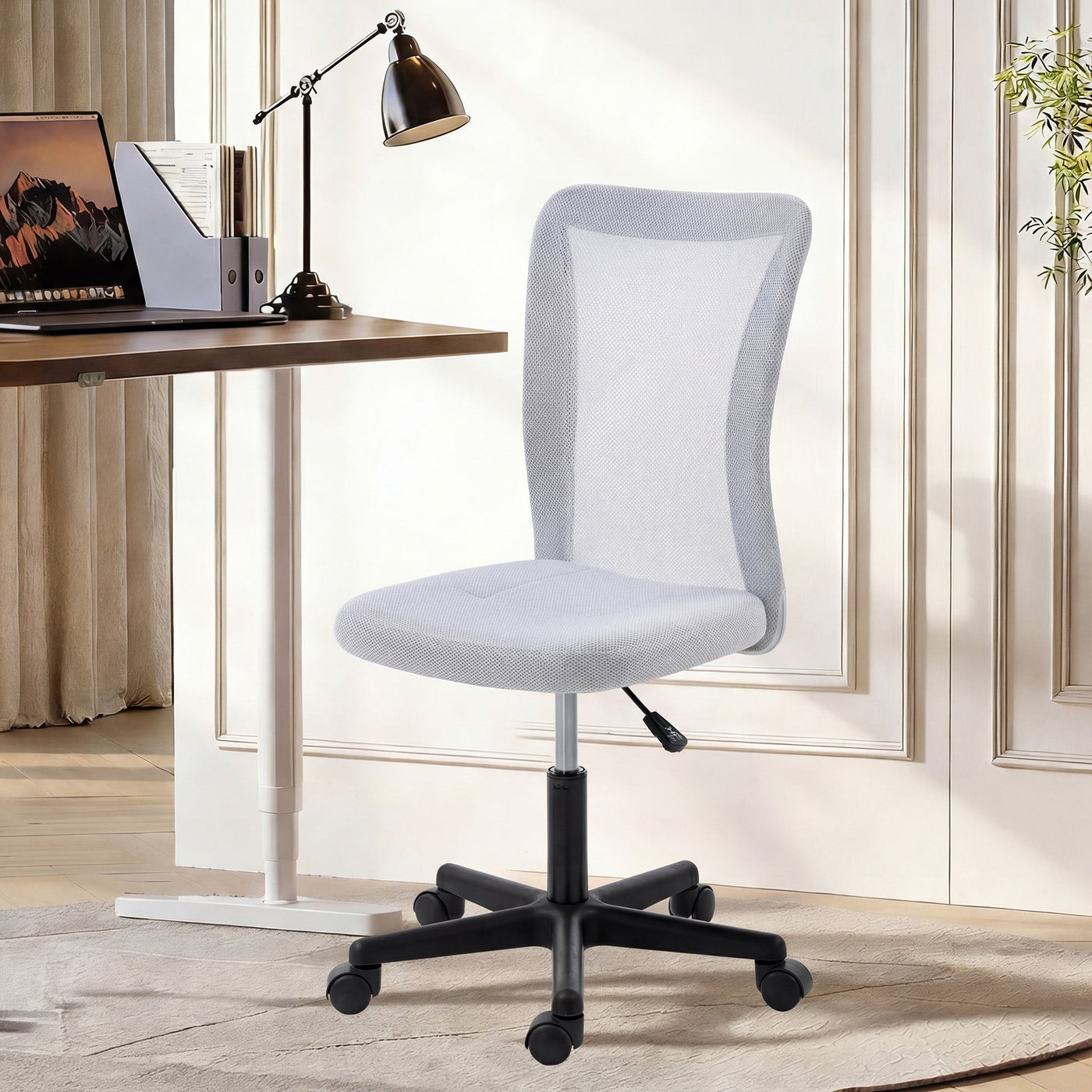 Vinsetto Mesh Office Chair Armless Swivel Executive Computer Desk Chair Adjustable Height Wheels White - White