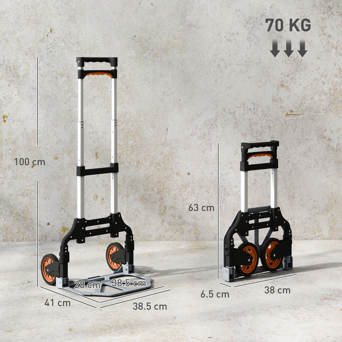 HOMCOM Folding Sack Truck, 70kg Lightweight Hand Truck with Wheels, Foldable Trolley Cart with Telescoping Handle for Warehouse, Office, Luggage, Silver Tone - Silver