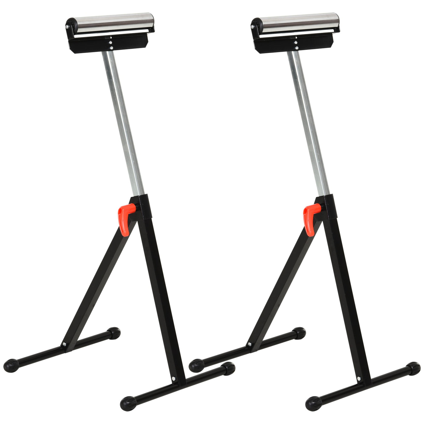 HOMCOM Set of 2 Folding Roller Stand, Material Support Pedestal with Ball Bearing Roller Height Adjustable Portable, Metal Construction, Black - Black