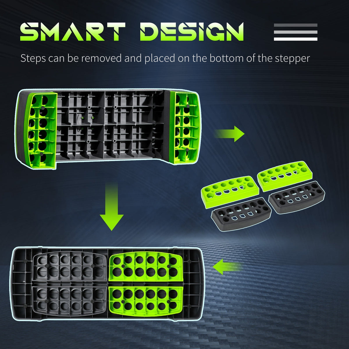 HOMCOM Aerobic Step with 3-Level Adjustable Heights for Home, Office Exercise, Grey and Green