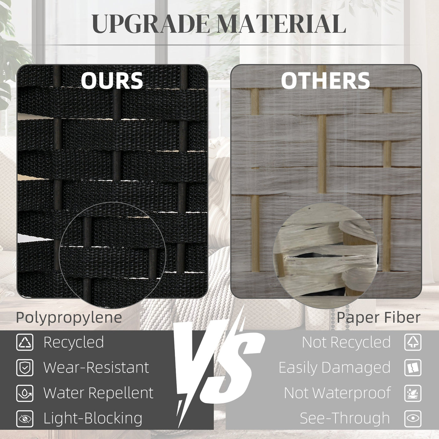 HOMCOM 6 Panel Folding Room Divider, Freestanding Privacy Screen for Living Room, Bedroom and Office, 240 x 170cm, Black - Black