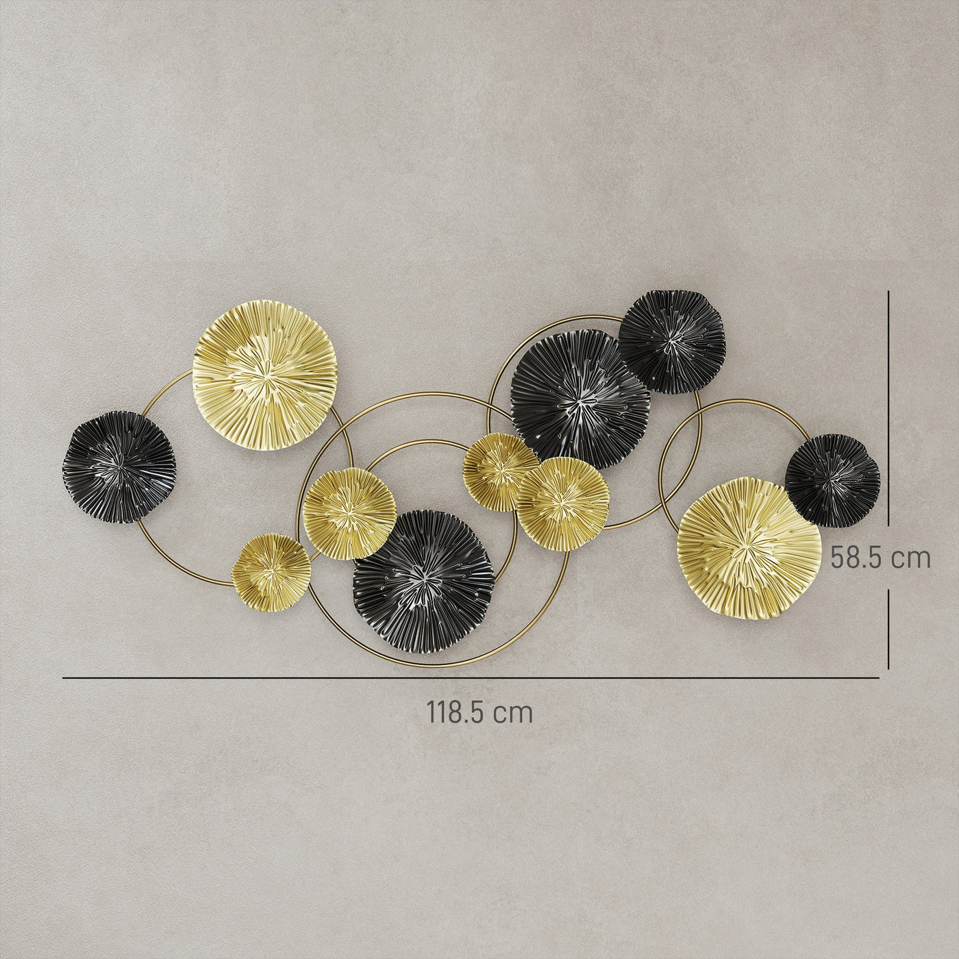 HOMCOM Metal Wall Art, Modern Hanging Wall Decor with Multi-Disc Design for Living Room - Gold Tone and Silver Grey