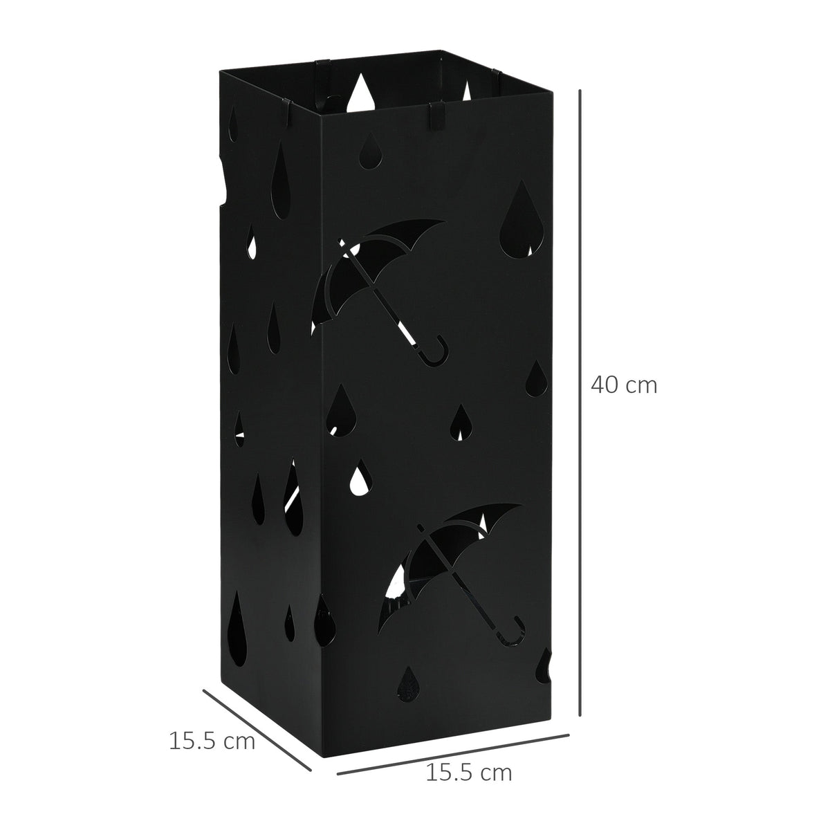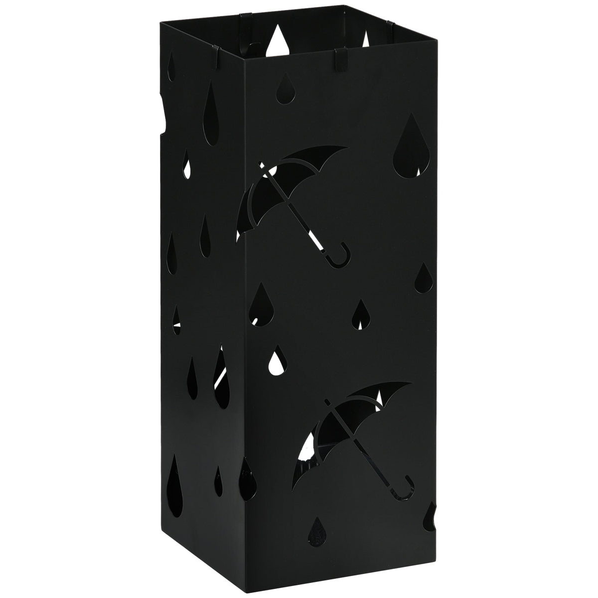 HOMCOM Steel Umbrella Stand, Square Umbrella Holder with 4 Hooks and Removable Drip Tray, Hollowed Umbrella Basket for Hallway, Black - Black