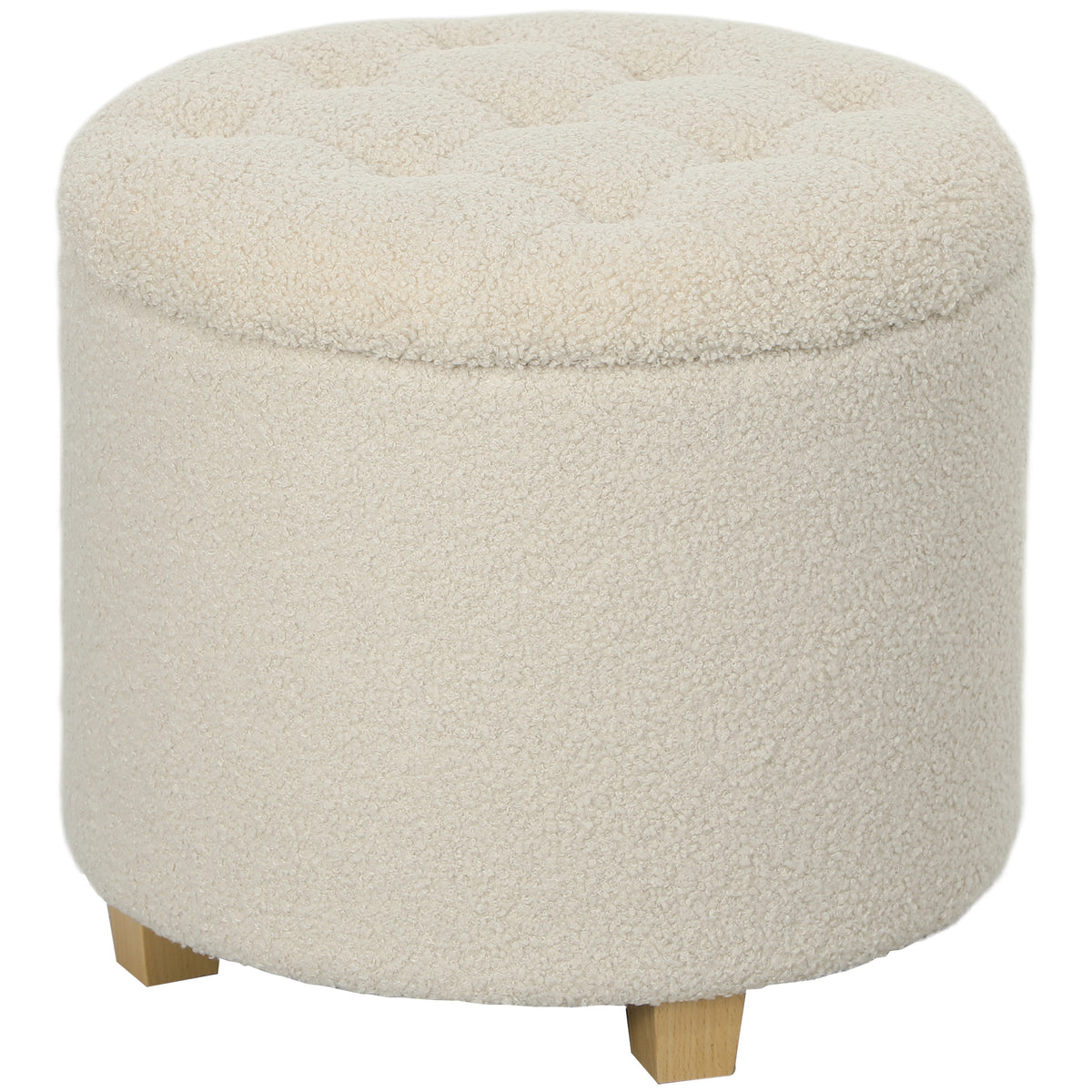 HOMCOM 40.5L Teddy Fleece Storage Ottoman - Cream White - Cream