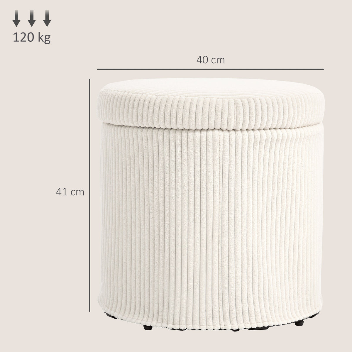 HOMCOM 40cm Round Storage Ottoman, Corduroy Footstool with Removable Lid and Legs, Vanity Stool for Living Room, Bedroom, Beige - Beige