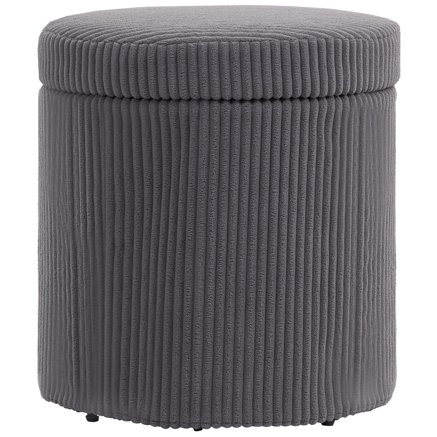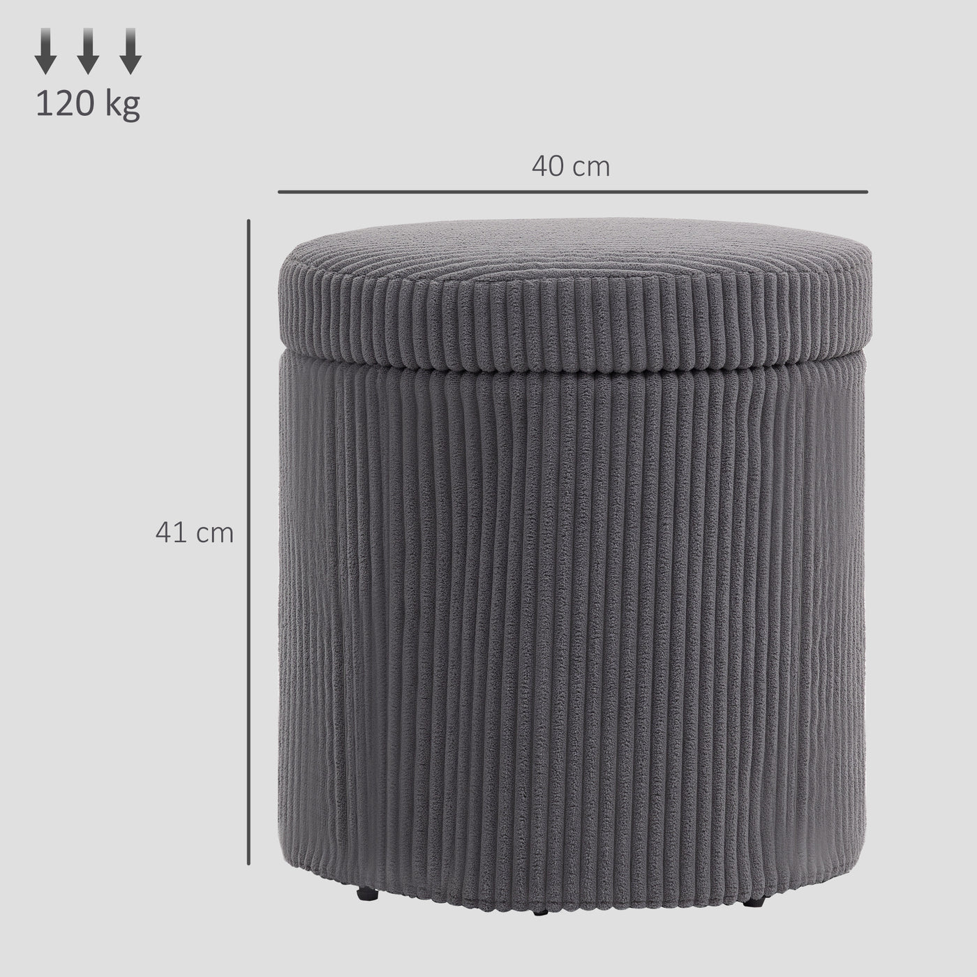 HOMCOM 40cm Round Storage Ottoman, Corduroy Footstool with Removable Lid and Legs, Vanity Stool for Living Room, Bedroom, Grey - Grey