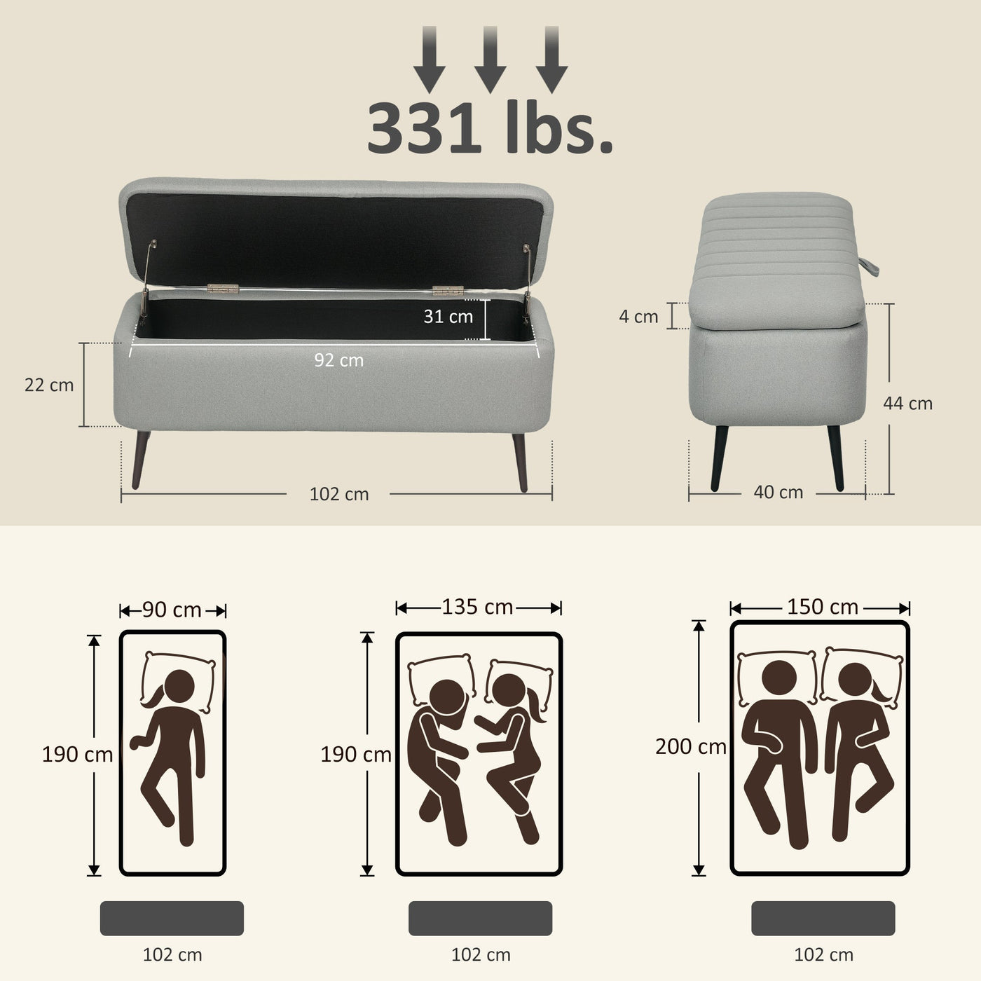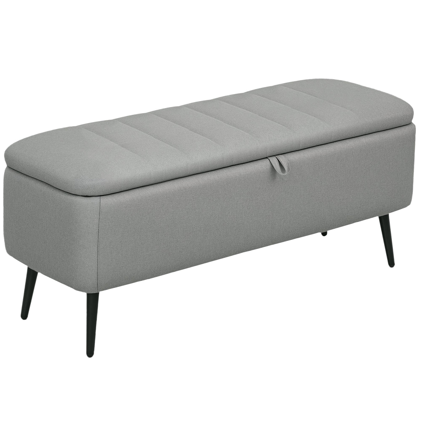 HOMCOM 92 x 31cm Linen-Look Storage Ottoman - Light Grey - Light Grey