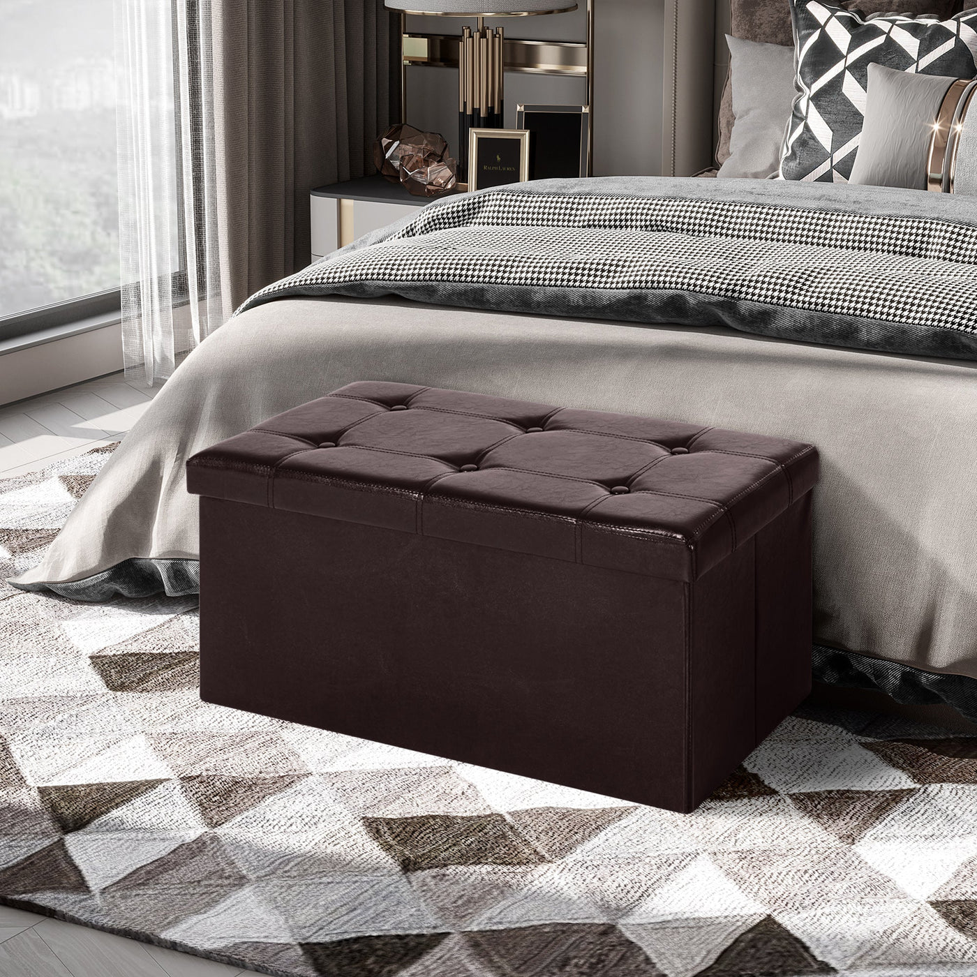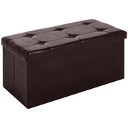 HOMCOM Folding Faux Leather Storage Cube Ottoman Bench Seat PU Rectangular Footrest Stool Box (Brown) - Brown