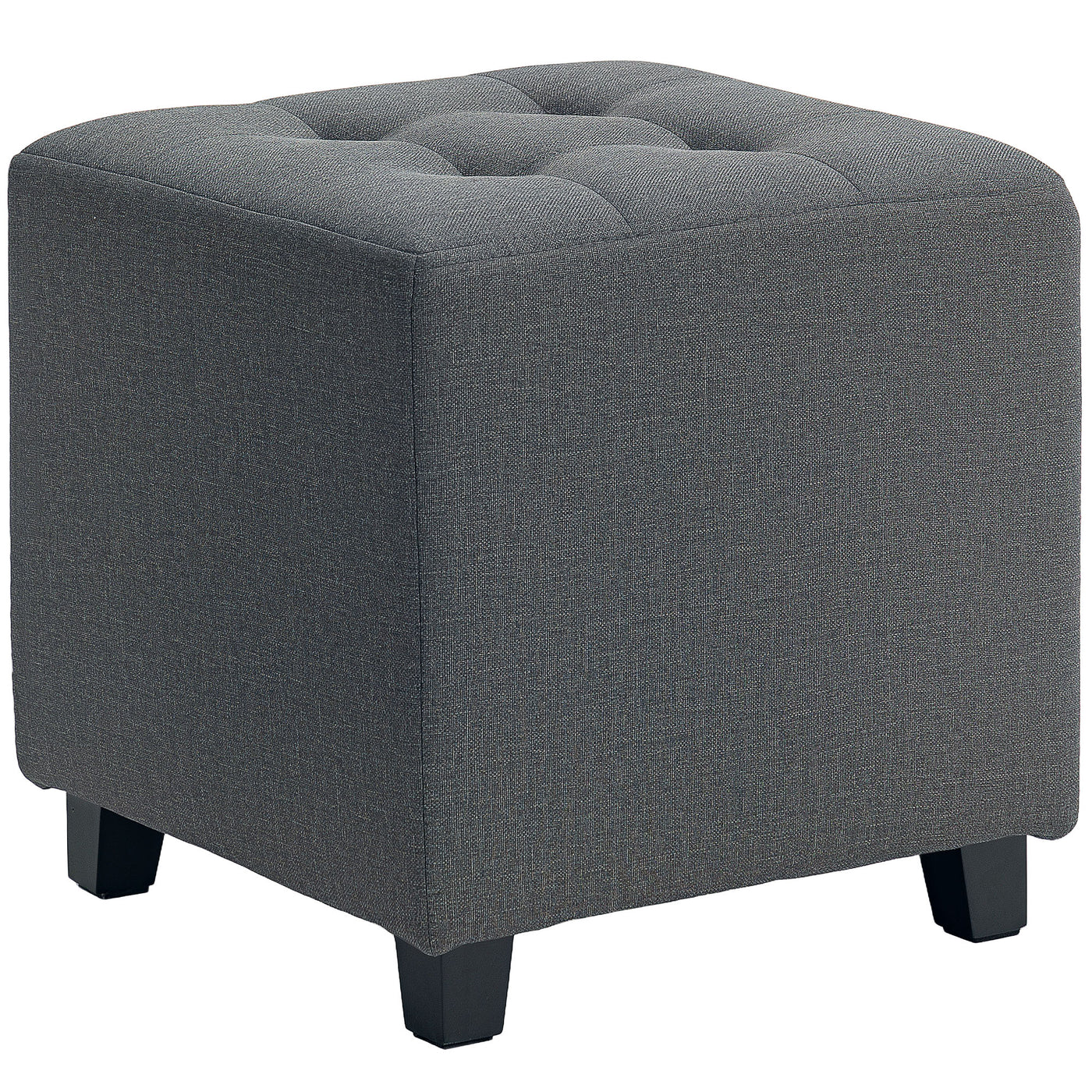 HOMCOM Square Footstool, Small Ottoman with Side Pocket, Linen Fabric Footrest Foot Stool with Rubber Wood Legs and Padded Seat for Living Room, Bedroom, Entryway, 35 x 35 x 35cm, Grey - Grey
