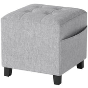 HOMCOM Square Footstool, Small Ottoman with Side Pocket, Linen Fabric Footrest Foot Stool with Rubber Wood Legs and Padded Seat for Living Room, Bedroom, Entryway, 35 x 35 x 35cm, Light Grey - Light Grey