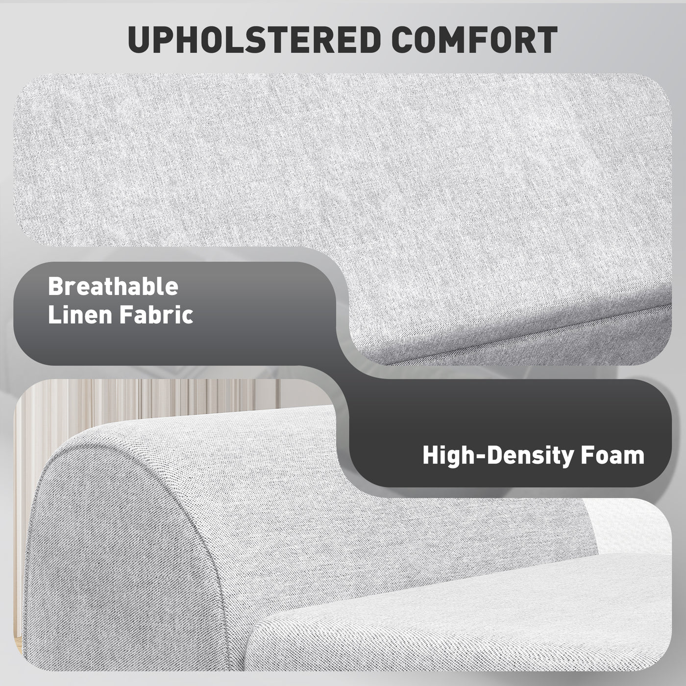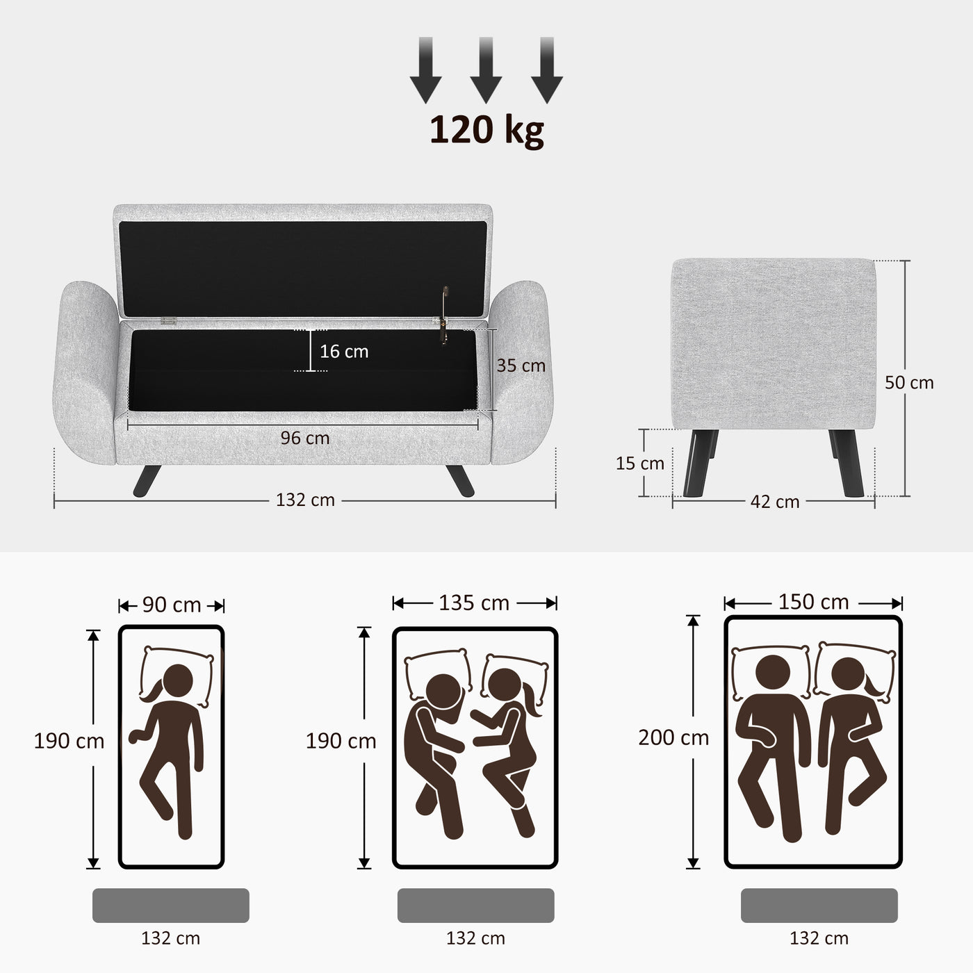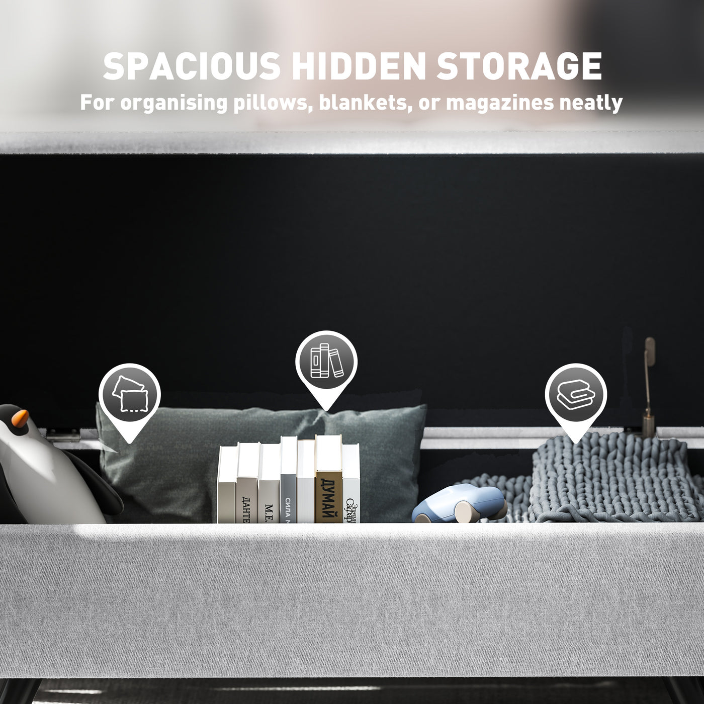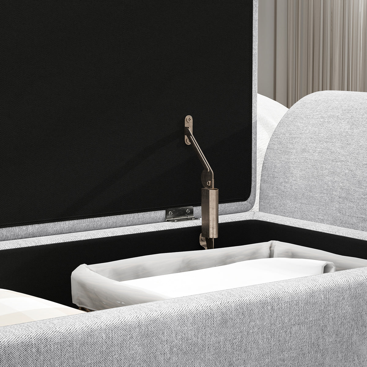 HOMCOM Storage Ottoman with Armrest, Upholstered Linen Storage Bench, Window Seat with Rubberwood Legs, Footstool for Bedroom Living Room, Hallway, Light Grey - Light Grey