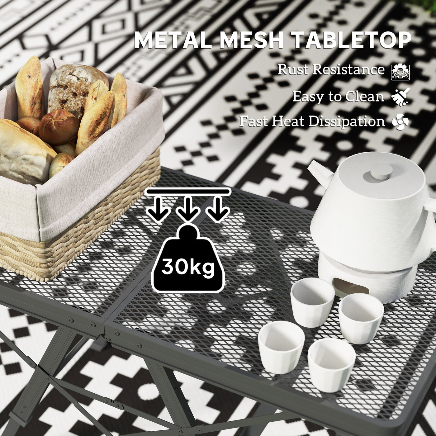 Discover the versatility of the Outsunny portable table, featuring a unique metal mesh tabletop that resists rust and water damage....