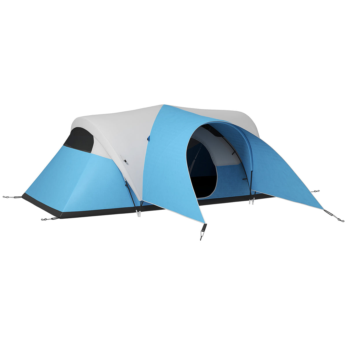 Outsunny 3000mm Waterproof Camping Tent for 5-6 Man, Family Tent with Porch and Sewn in Groundsheet, Portable with Bag, Blue - Blue
