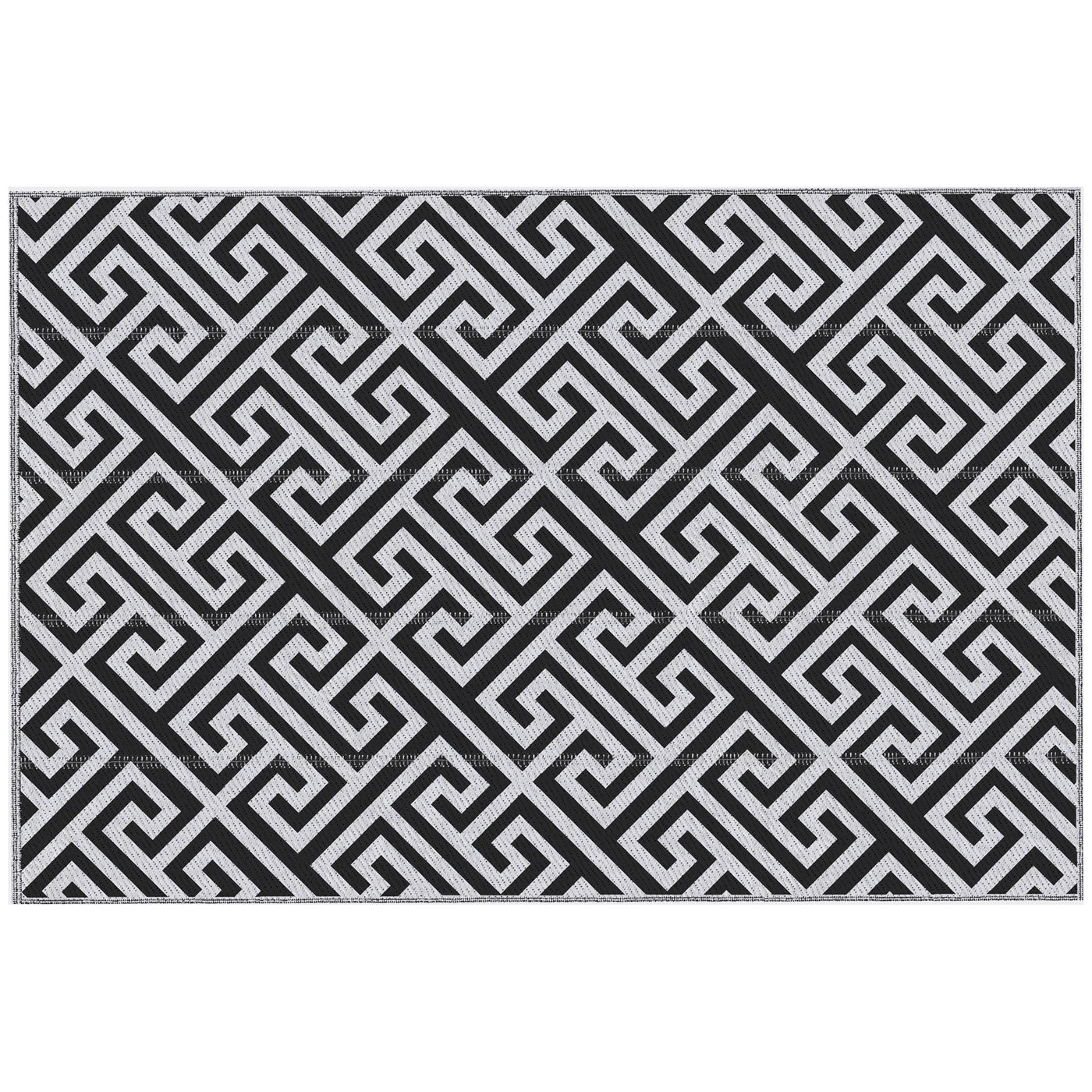 Outsunny 182 x 274 cm(6x9ft) Outdoor Rug Reversible Mat Plastic Straw Rug Portable RV Camping Mat for Garden Deck Picnic Indoor, Black & White - Black