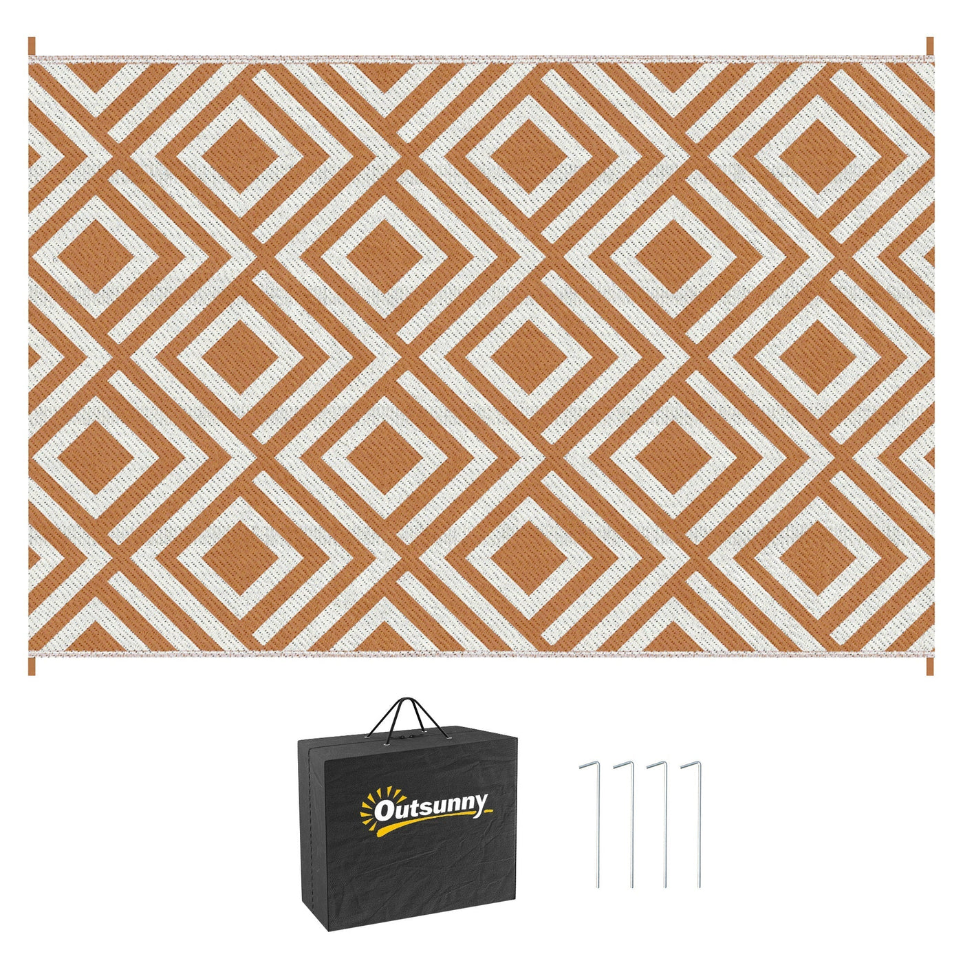 Outsunny Reversible Outdoor Rug, Plastic Straw Mat w/ Carry Bag Ground Stakes for Garden RV Picnic Beach Camping 182x274cm Brown - Brown