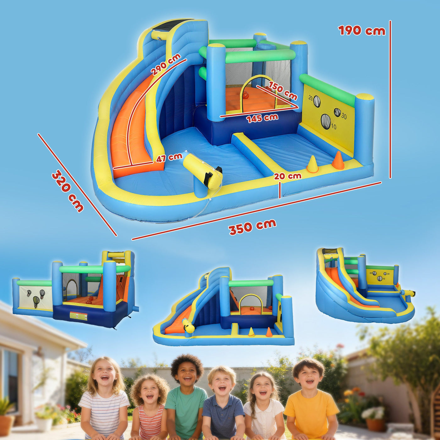 AIYAPLAY 8 in 1 Bouncy Castle for Kids, Inflatable Bounce House with Slide, Pool (Ball Pit), Water Cannon for Indoor Outdoor - Multicolour