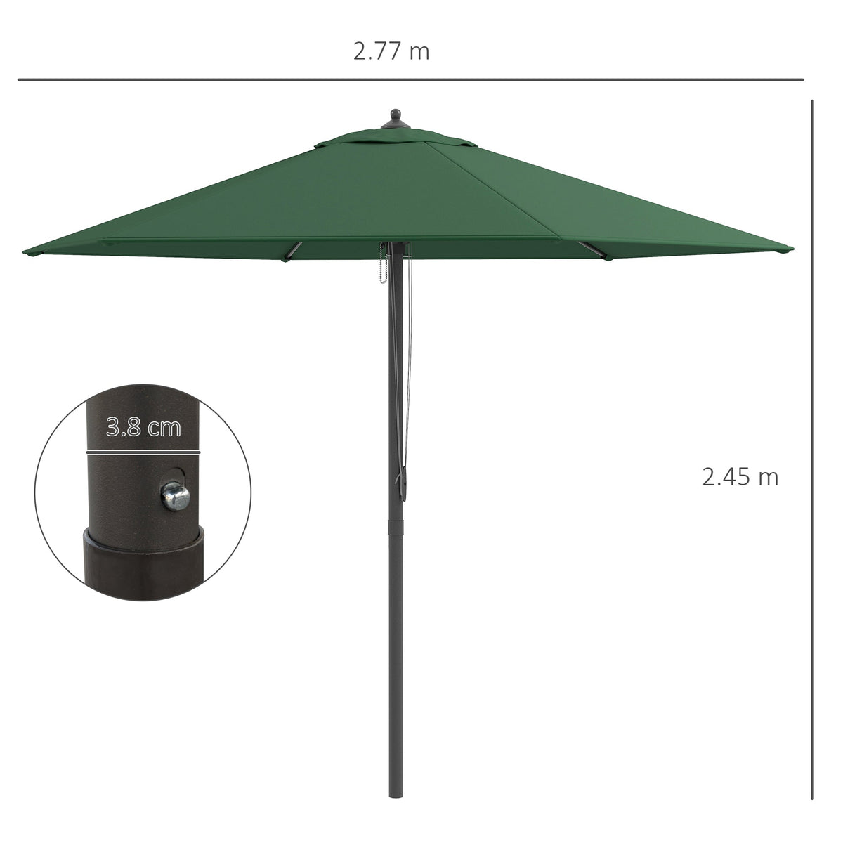 Outsunny 2.8m Garden Parasol Umbrella, Round Outdoor Market Table Umbrella Sun Shade Canopy, Green - Green