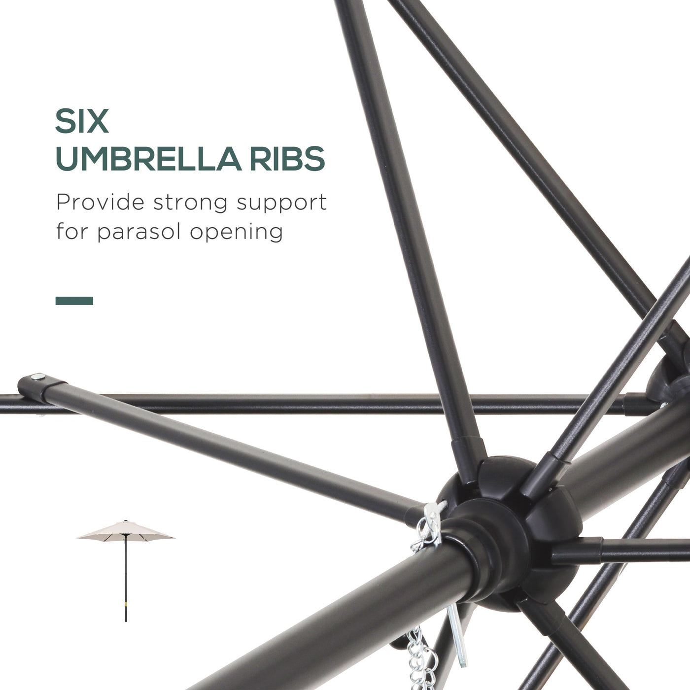 Outsunny 2m Garden Parasol Umbrella, Outdoor Sun Shade with 6 Sturdy Ribs for Balcony, Bench, Garden, Cream White - Cream