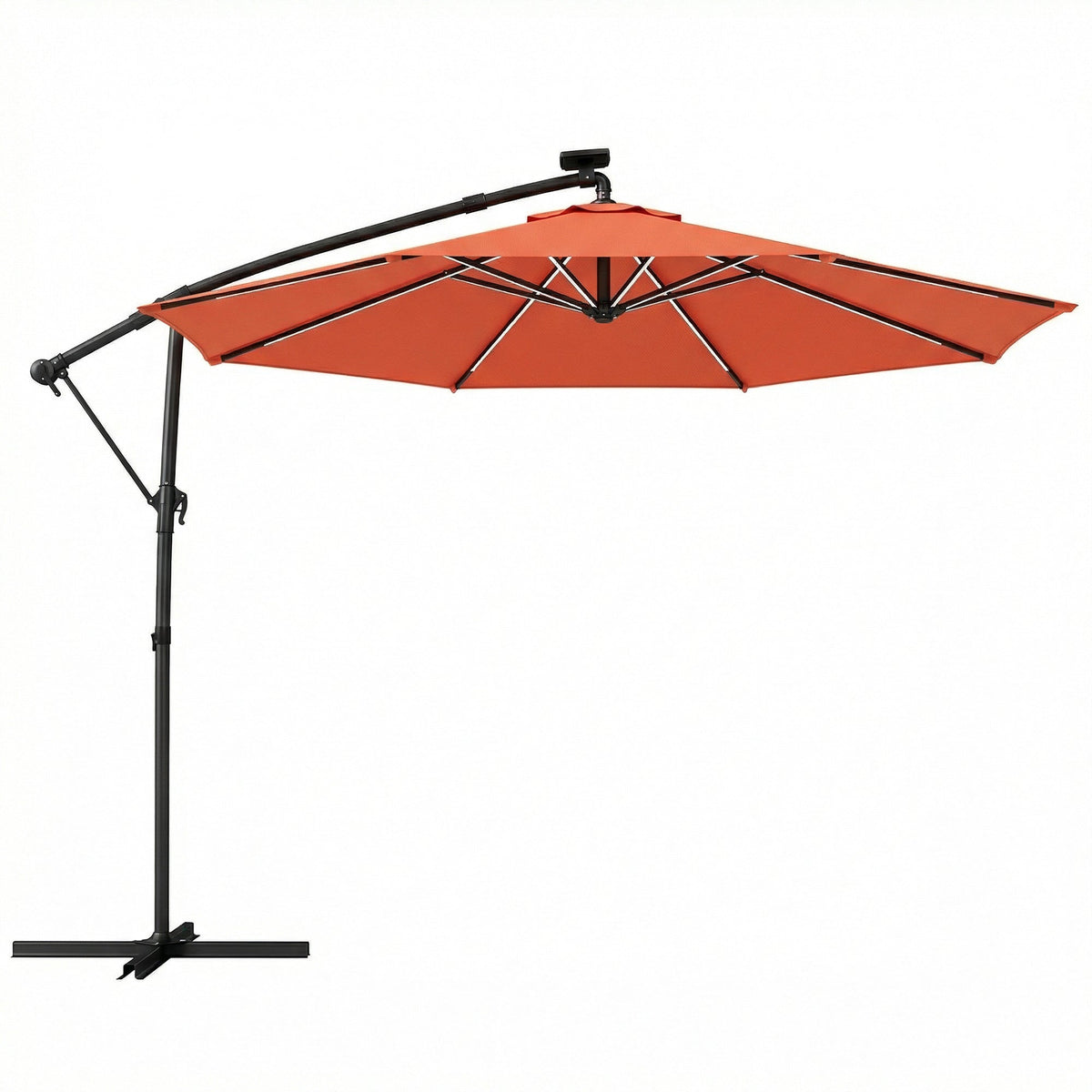 Outsunny 3 m Garden Cantilever Parasol with LED Solar Light, Round Overhanging Umbrella with 360° Rotation, Cover, Orange - Orange