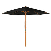Outsunny 3(m) Garden Parasol, Pulley Operated Patio Umbrella, Wooden Table Market Umbrella with Rope Pulley Mechanism and 8 Ribs, Black - Black
