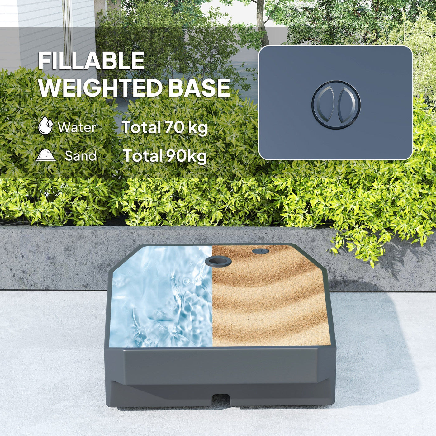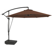 Outsunny 3(m) Garden Cantilever Parasol with Fillable Base up to 90kg, Wind Protection Strap, Cover, Round Banana Hanging Umbrella with Crank Handle and Tilt, UPF50+ Patio Umbrella, Brown - Brown