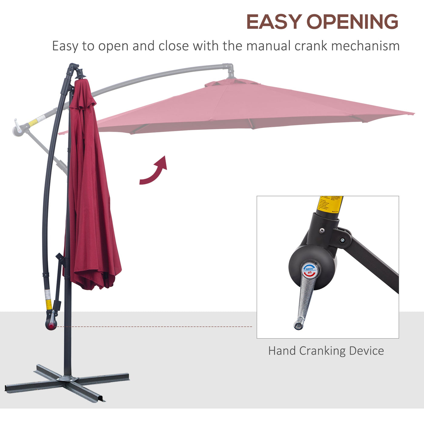 Outsunny 3m Water Resistant Terylene Hanging Parasol Wine Red - Red Wine