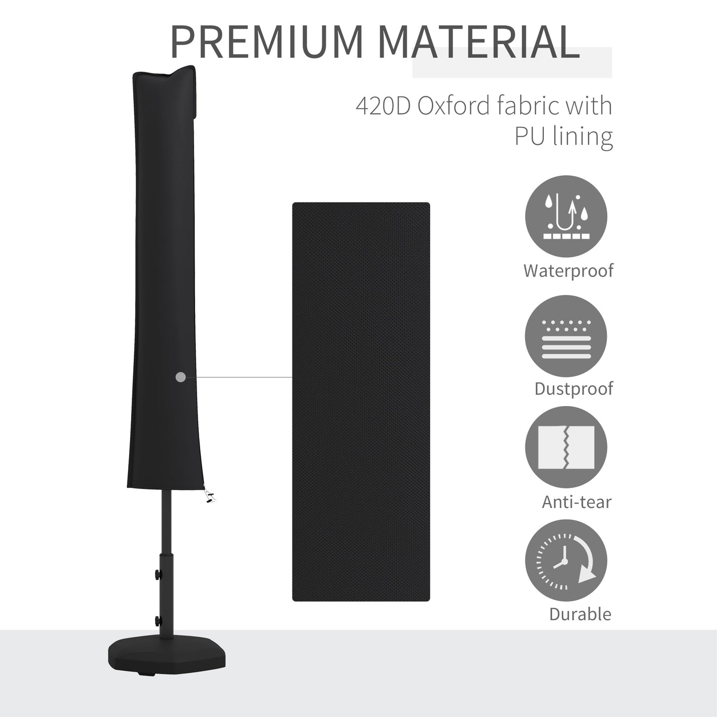 Outsunny Parasol Cover, Cantilever Umbrella Cover for 2-3.5 m Parasols, 420D Oxford Fabric Banana Umbrella Protector with Zipper for Outdoor Garden, Patio, Black - Black
