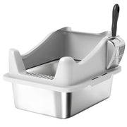 PawHut Stainless Steel Cat Litter Box with High Sides, Metal Scoop, 43 x 33 x 25 cm - Grey