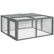 PawHut Folding Rabbit Run Wooden Large Rabbit Hutch for 2-3 Rabbits, Grey - Grey