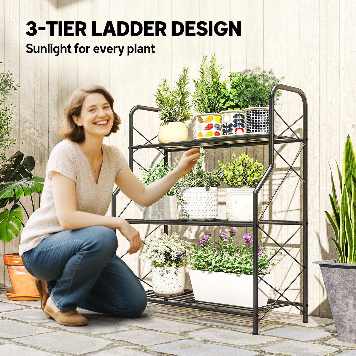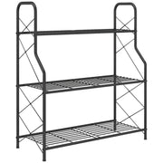 Outsunny 3-Tier Metal Plant Stand, Heavy Duty Ladder Shelf Potted Plants Display Rack, Indoor Outdoor Flower Pot Holder - Black