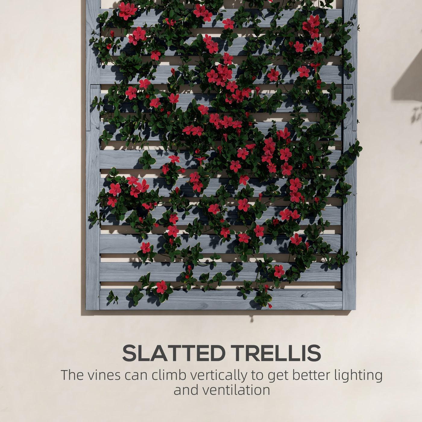 Outsunny Wall Mounted Plant Stands Set of 2, Fir Wood Flower Stand with Shelves and Slatted Trellis for Patio, Balcony, Porch - Grey